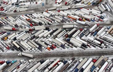 The third type of idling is most succinctly described as “waiting” and can be divided into two categories, depending on whether the truck is simply parked or waiting in a queue, needing to move forward every few minutes to maintain its place in the line. The term for waiting in a line is “creep mode.”